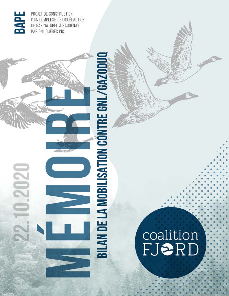 À l’occasion du 2e anniversaire de la création de la Coalition Fjord, ce mémoire présente les faits saillants de la mobilisation contre GNL/Gazoduq. Sont abordés les actions réalisées par la Coalition Fjord ainsi que les appuis de la part de différents groupes, organismes et organisations. Deux commentaires sont réalisés sur le processus même du BAPE et l’opposition du projet et sur la non-acceptabilité sociale. Rédigé et présenté par Adrien Guibert-Barthez lors de la séance de 19h du 2 novembre 2020.