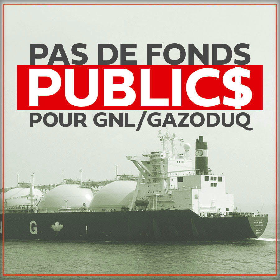 Réaction à la demande d’aide financière faite par Gazoduq au gouvernement du Québec: des groupes citoyens et des organismes environnementaux demandent au gouvernement Legault qu’aucun fond public ne soit accordé à l’entreprise GNL Québec, ni à aucune de ses composantes, pour son projet d’exportation de gaz fossile.