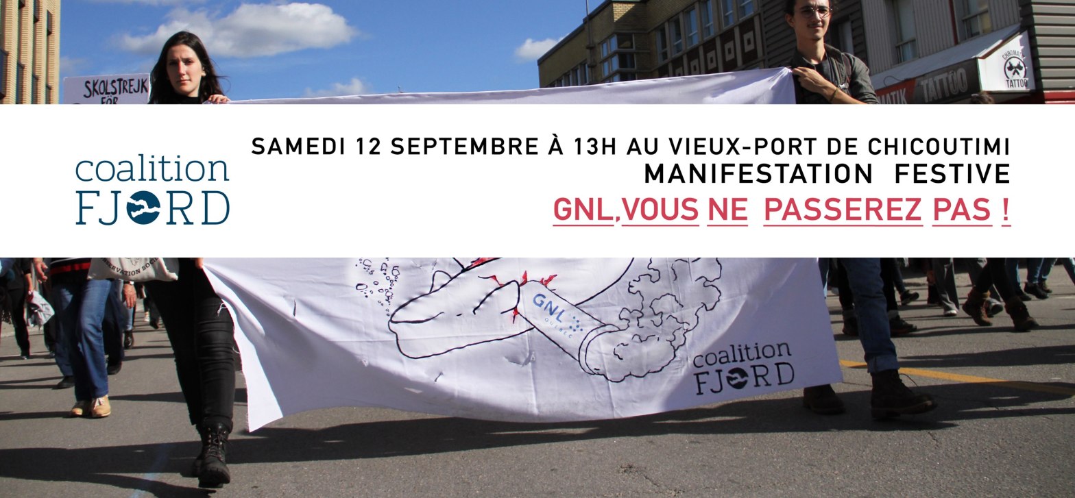 GNL, vous ne passerez pas! La Coalition Fjord invite la population à une manifestation festive et familiale le samedi 12 septembre prochain. La commission d’examen du Bureau d’audience publique sur l’environnement (BAPE) sur le complexe de liquéfaction de GNL/Gazoduq devrait commencer ses travaux et la Coalition Fjord veut démontrer une fois de plus l’opposition importante et grandissante contre ce projet d’une autre époque.